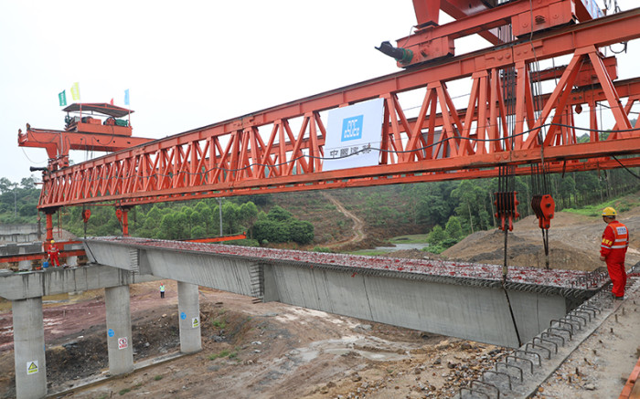 本次架設(shè)箱梁的為那隆互通主線橋,位于靈山段那隆鎮(zhèn)主線K72+709.5-K72+806.5處。該橋全長(zhǎng)97米,共3跨,每跨30米,上部構(gòu)造為先簡(jiǎn)支后連續(xù)結(jié)構(gòu),設(shè)計(jì)雙向四車道。為保障本次架設(shè)工作順利進(jìn)行,大浦公司周密部署,采取多項(xiàng)有效措施:一是結(jié)合項(xiàng)目特點(diǎn),貫徹北投集團(tuán)和新發(fā)展集團(tuán)高速公路項(xiàng)目建設(shè)推進(jìn)會(huì)精神,會(huì)同總監(jiān)辦、施工單位提前進(jìn)行技術(shù)交底,確定架設(shè)方案;二是積極動(dòng)員,科學(xué)部署當(dāng)日各項(xiàng)環(huán)節(jié)和作業(yè)流程;三是加強(qiáng)管控,現(xiàn)場(chǎng)派人進(jìn)行監(jiān)督指導(dǎo)。在做好充分準(zhǔn)備的情況下,大浦路全線首片箱梁成功完成架設(shè)。
